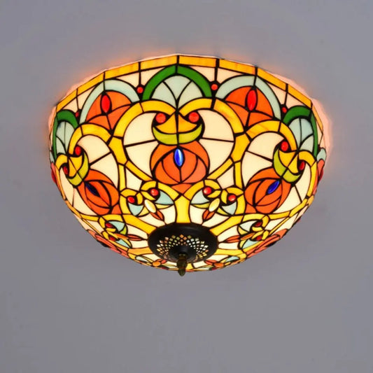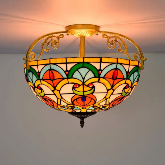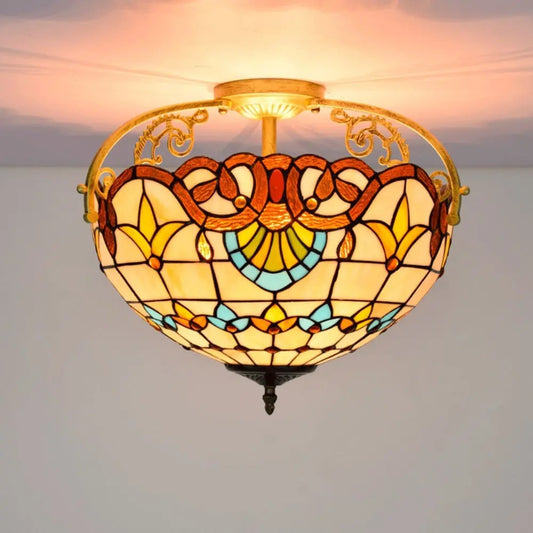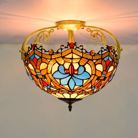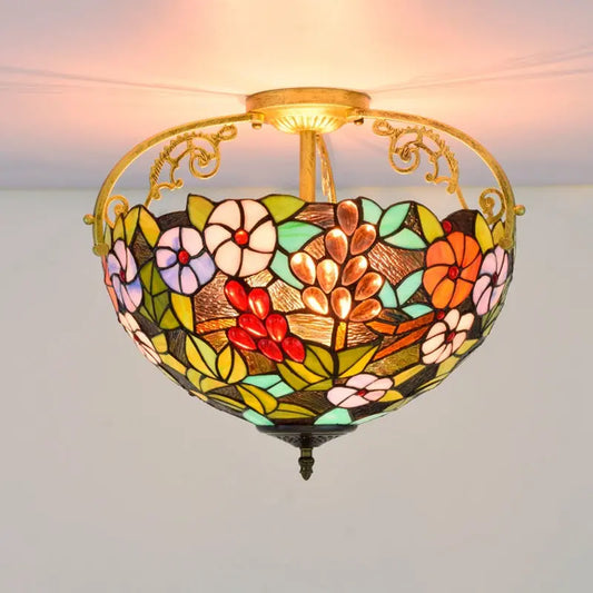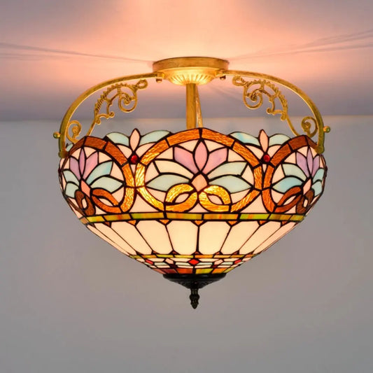 16inch Stained Glass Floral Lampshade Vintage Tiffany Ceiling Light