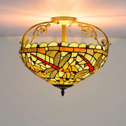 16inch Stained Glass Dragonfly Lampshade Tiffany Ceiling Light