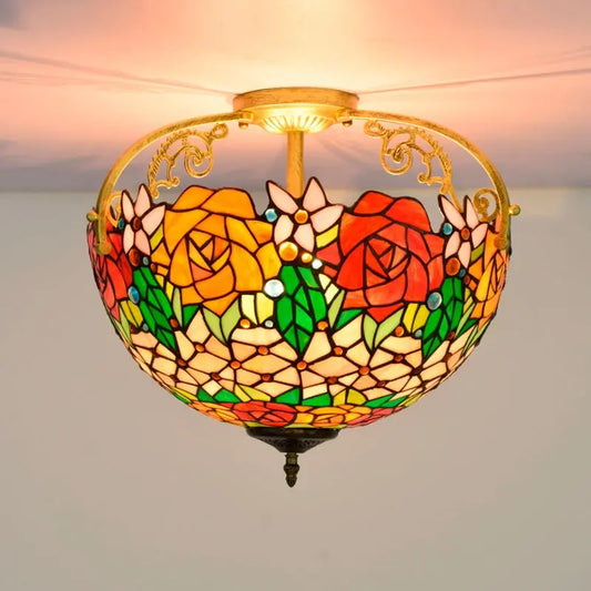 16inch Stained Glass Rose Lampshade Tiffany Ceiling Light