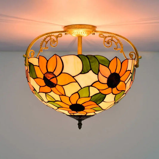 16inch Vintage Stained Glass Sunflower Tiffany Ceiling Light