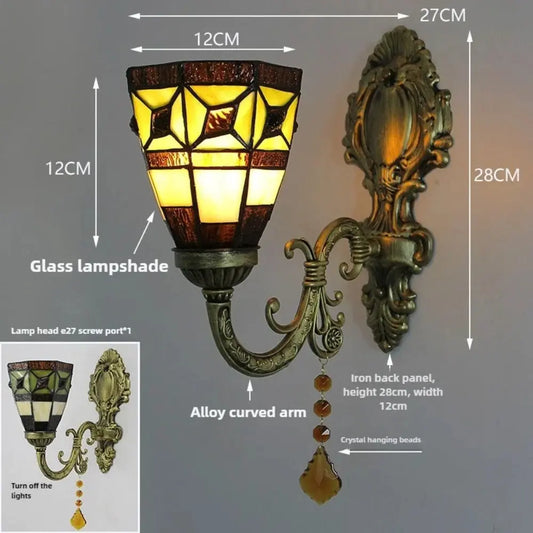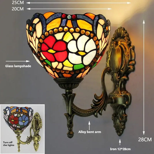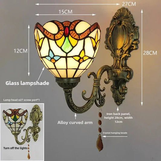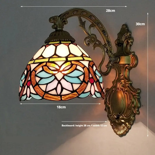 15cm Vintage Stained Glass Baroque Lampshade Wall Lamp Tiffany Sconce Light