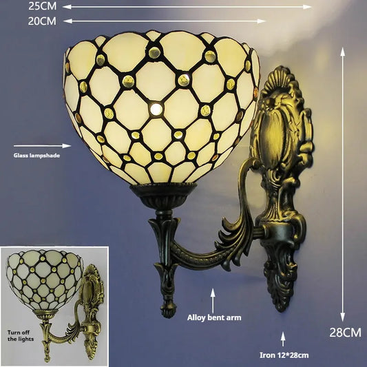 8inch Tiffany Stained Glass Pastoral Beige Beads Lampshade Vintage Outdoor Wall Lights Sconce