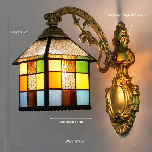 Small Pastoral Diamond House Lampshade Handmade Vintage Square Tiffany Lamp Sconce