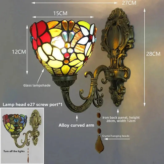 Small Tiffany Sconce Pastoral Red Star Baroque Lampshade Vintage Wall Lamp