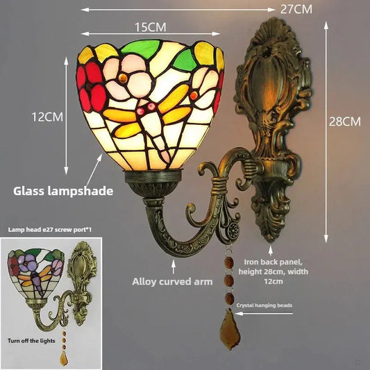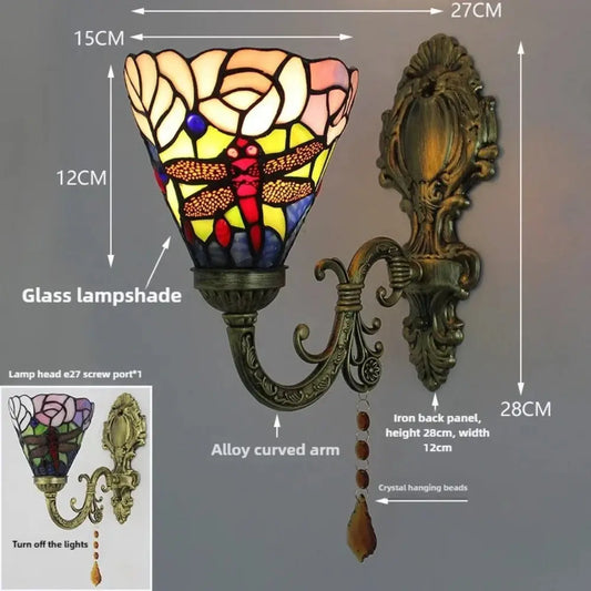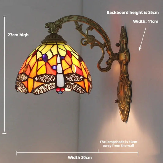 Vintage Stained Glass Dragonfly Flower Lampshade Tiffany Wall Sconces Lighting