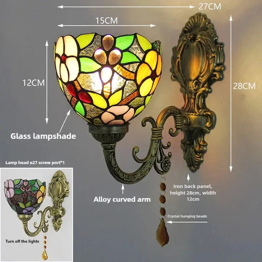 Vintage Stained Glass Simple Floral Lampshade Wall Lamp Tiffany Sconce