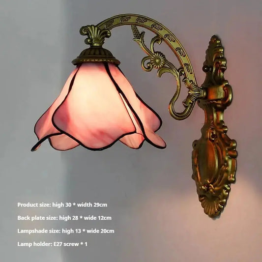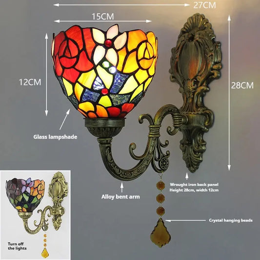 Vintage Stained Glass Rose Lampshade Wall Lamp Tiffany Sconce Light Fixtures