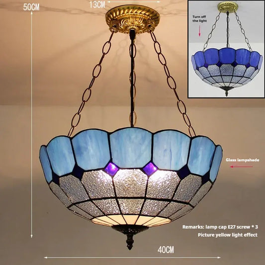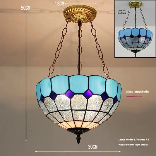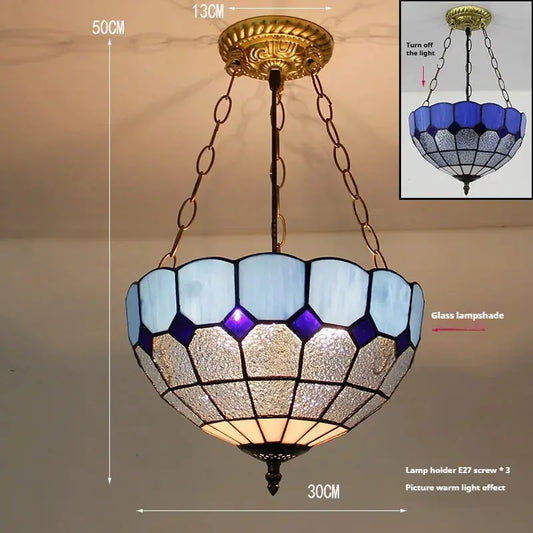 12inch Stained Glass Blue Anti-chandelier Tiffany Style Hanging Light
