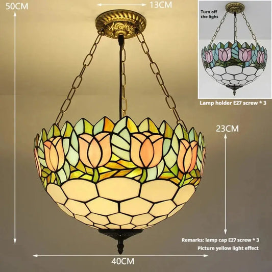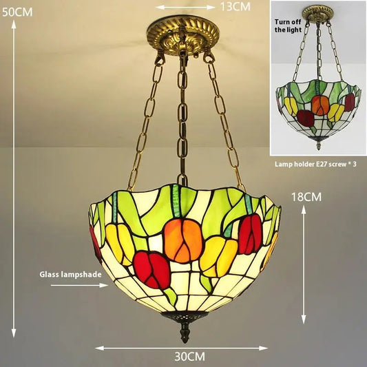 12inch Stained Glass Tulips Floral Tiffany Style Hanging Light Anti-chandelier