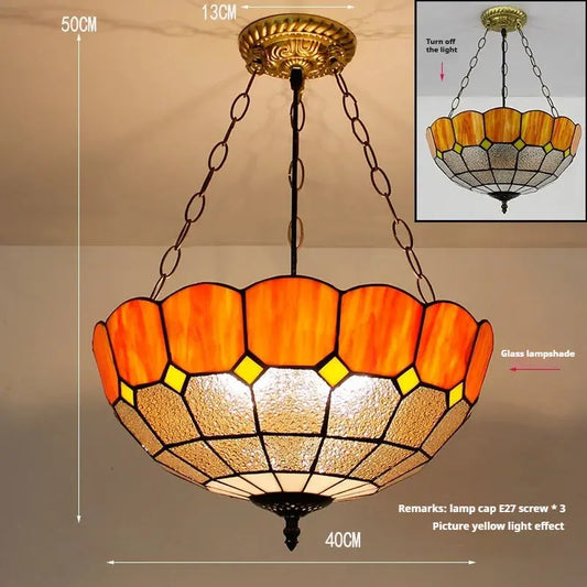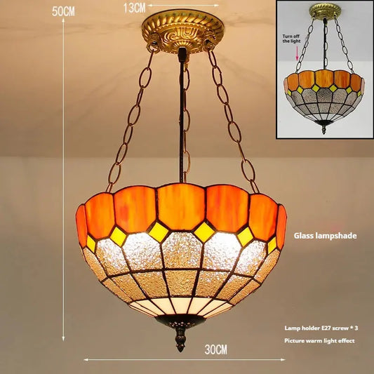 12inch Tiffany Chandelier Lights Stained Glass Orange Anti-chandelier Pendant Light