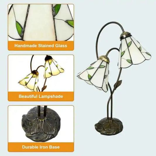 Vintage Stained Glass Flower Leaf Double Head Tiffany Table Lights