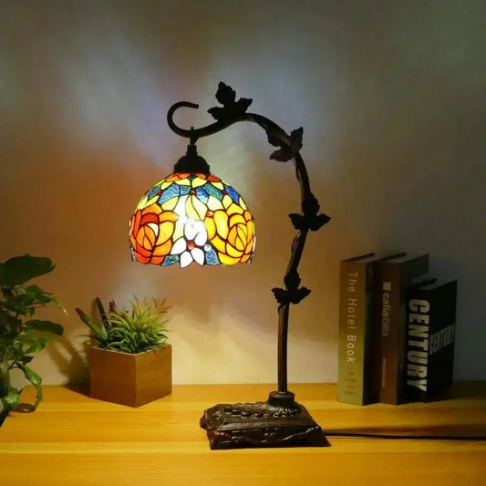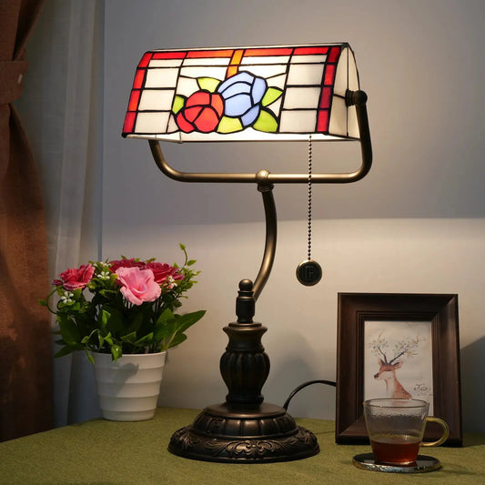 Tiffany Stained Glass Rose Lampshade Bedside Light Table Desk Bankers Lamp