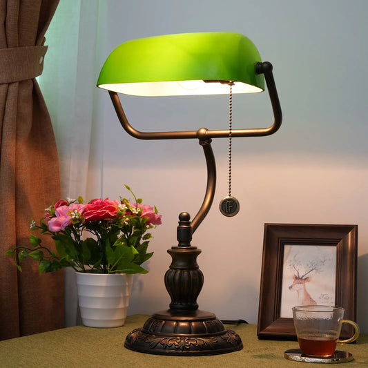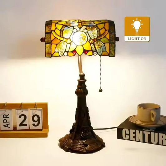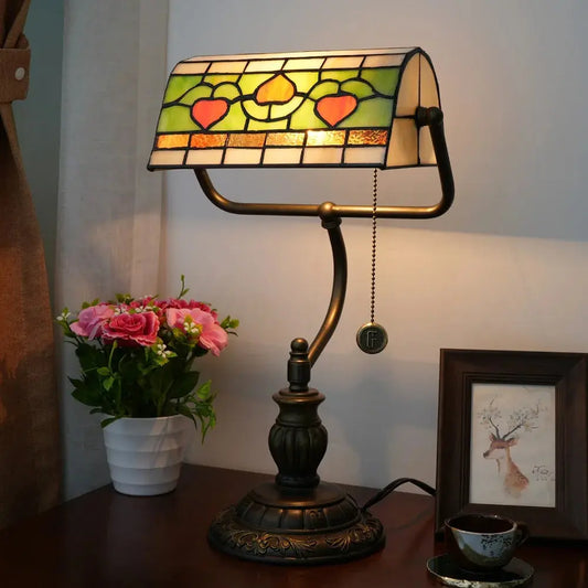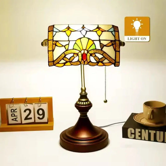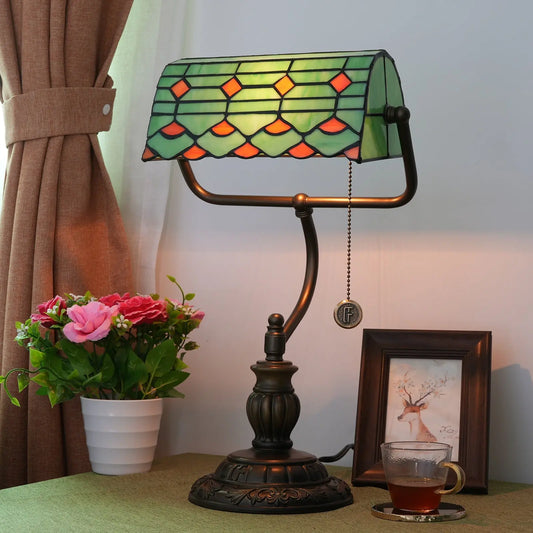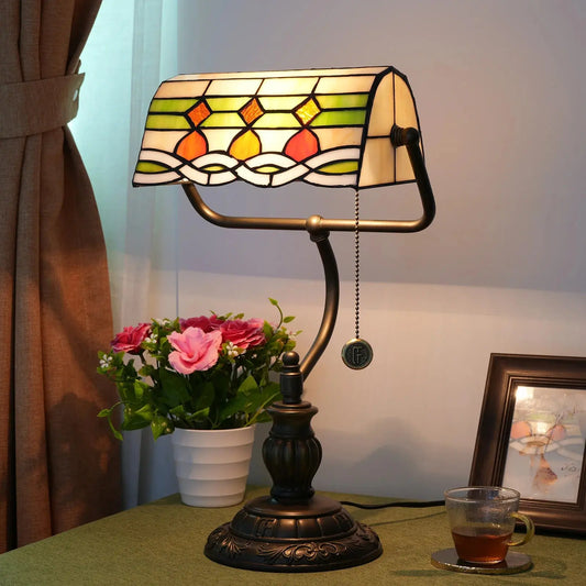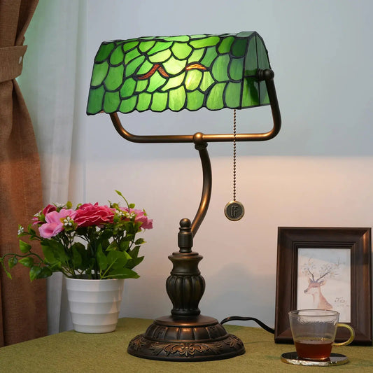 Stained Glass Baroque Lampshade Antique Bankers Light Tiffany Table Lamps with Pull Chain