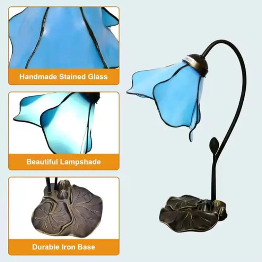 8inch Stained Glass Blue Lotus Lampshade Vintage Tiffany Table Lights