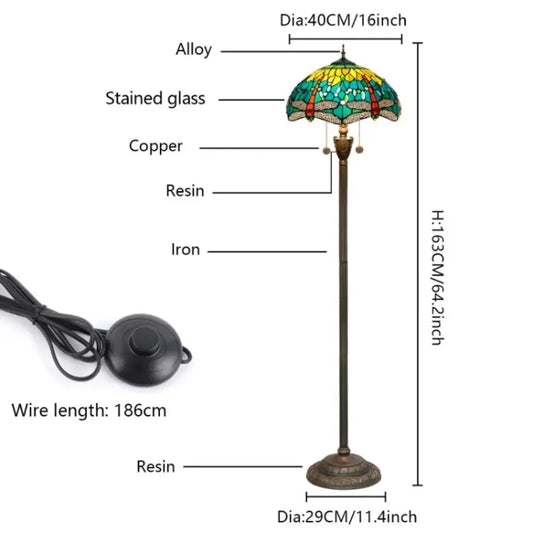 Dia40cm Tiffany Green Dragonfly Lampshade Antique Stained Glass Floor Lamps