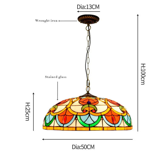 20inch 50cm Stained Glass Lampshade Outdoor Pendant Lighting Tiffany Hanging Lamp