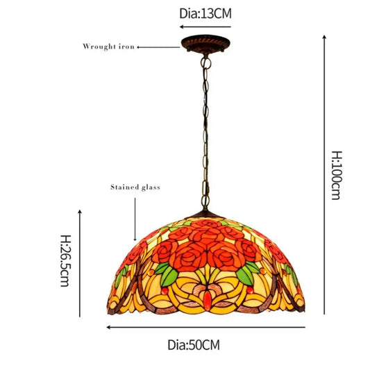 20inch Stained Glass Rose Lampshade Red Tiffany Lamp Pendant Light
