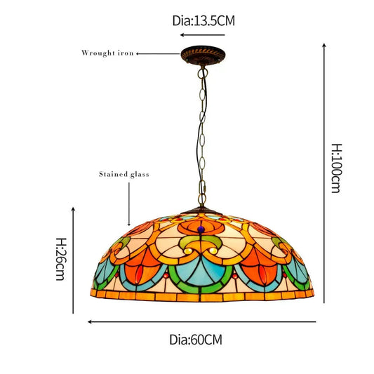 24inch 60cm Tiffany Style Hanging Light Fixtures Stained Glass Lampshade Pendant Lamps