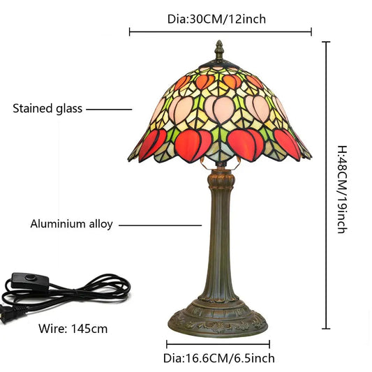 8inch Vintage Stained Glass Tulip Flower Tiffany Table Lamp