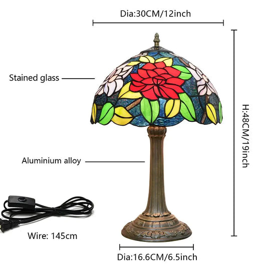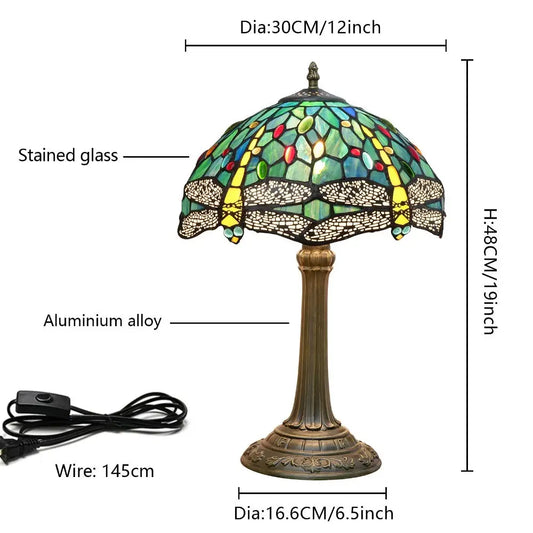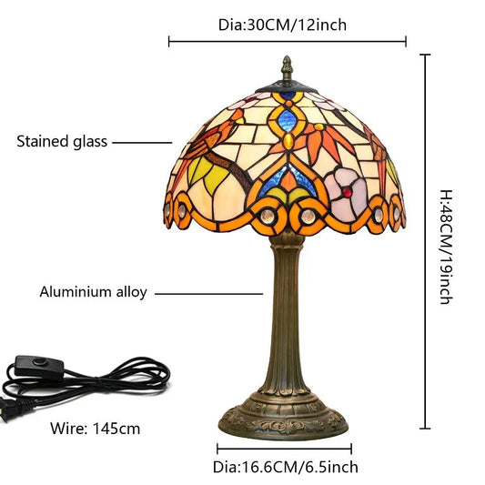 12inch Tiffany Table Lamps Classical Stained Glass Antique Bedside Light