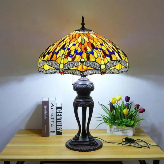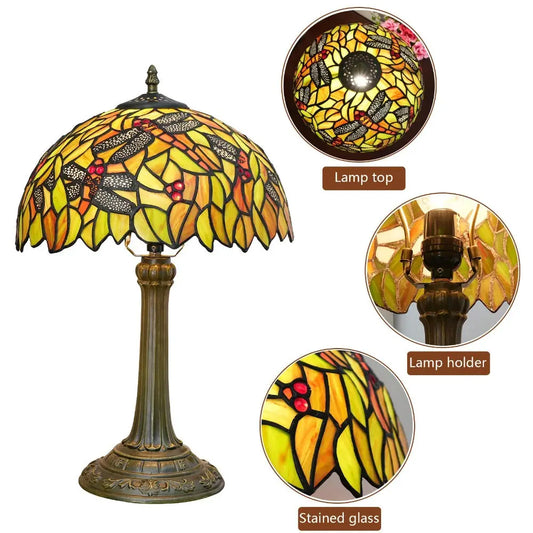 12inch Tiffany Antique Dragonfly Stained Glass Lamp Yellow Lampshade Vintage Desk Light