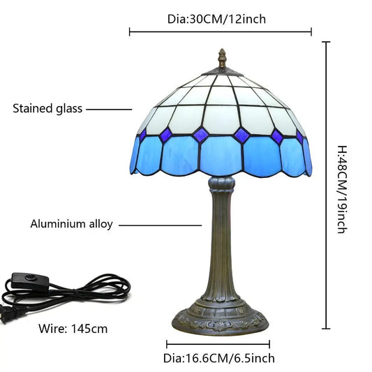 8inch 20cm Vintage Stained Glass Blue Lampshade Tiffany Table Lamp