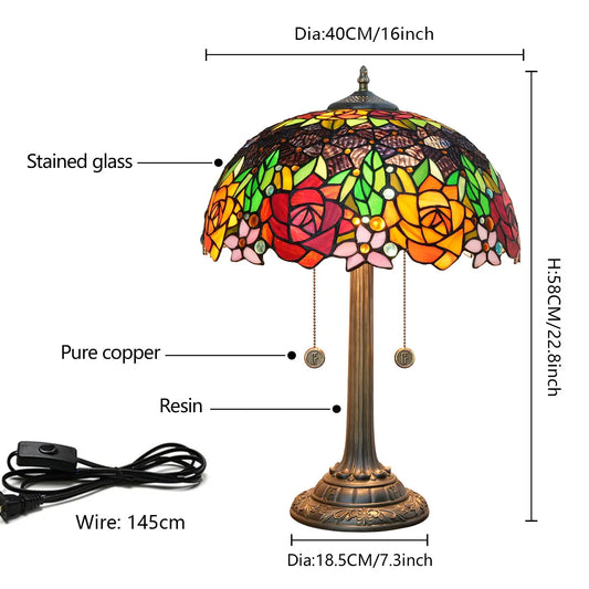 16inch Stained Glass Rose Flower Floral Lamphade Antique Tiffany Table Lamp