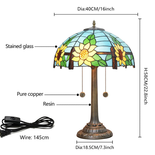16inch Stained Glass Blue Sunflower Tiffany Desk Lamps Bedside Light