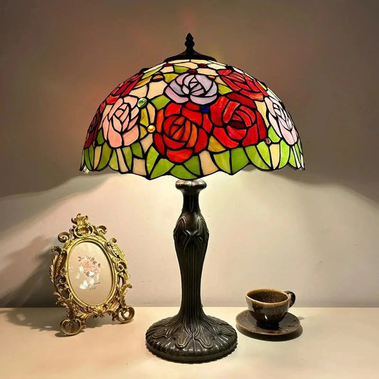 16inch Stained Glass Rose Tiffany Desk Lamps Bedside Light