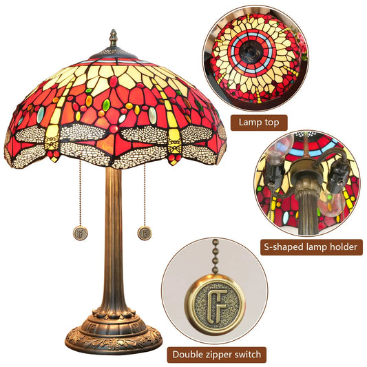 16inch Tiffany Dragonfly Stained Glass Lamp Red Lampshade Bedroom Desk Lamps