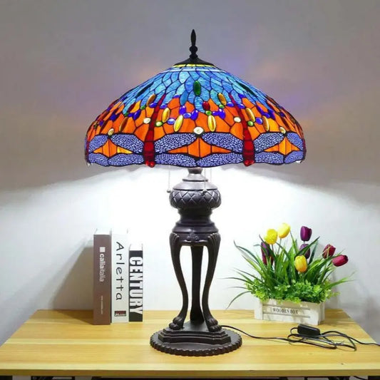 18inch 46cm Stained Glass Dragonfly Large Tiffany Style Table Lamps