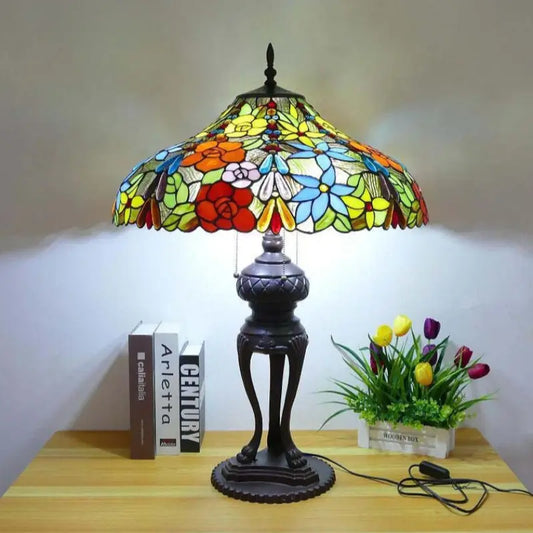 18inch 46cm Stained Glass Dragonfly Lotus Large Tiffany Style Table Lamps