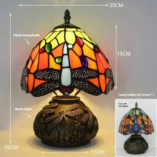 8inch 20cm Stained Glass Lampshade Vintage Dragonfly Tiffany Table Lamp