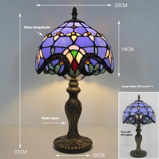 8inch 20cm Vintage Stained Glass Blue Lampshade Tiffany Table Lamp