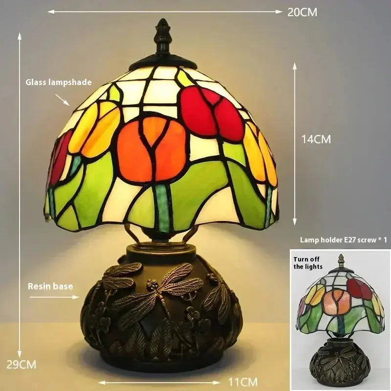 8inch Vintage Stained Glass Tulip Flower Tiffany Table Lamp